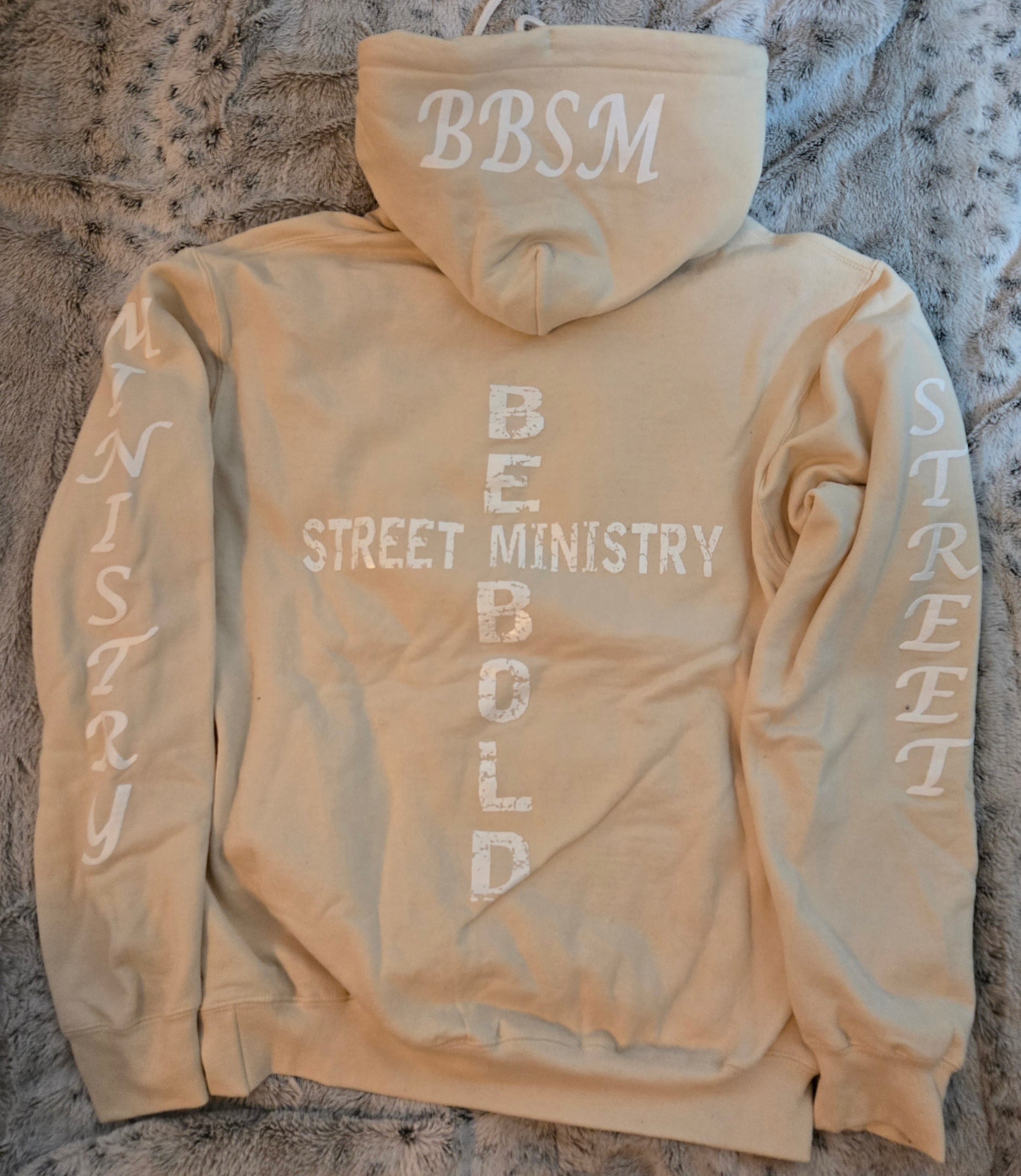 Hope Dealer distressed logo hoodie sweatshirt 50/50 blend. Natural w/white logo.